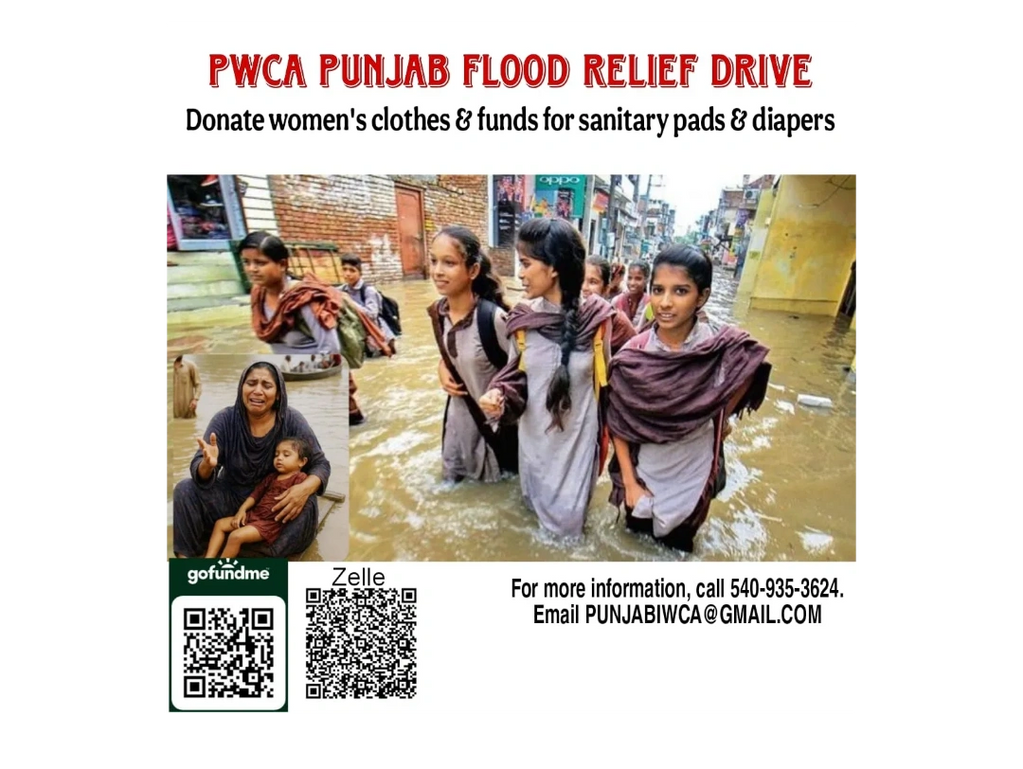 The Punjabi Women Cultural Association (PWCA) expresses deep concern for the people of Punjab who are enduring the devastating impact of the recent floods. Thousands of families have been displaced and are in urgent need of basic necessities.